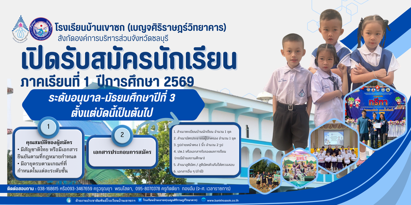 สวัสดียินดีต้อนรับเข้าสู่เว็บไซต์ โรงเรียนบ้านเขาซก(เบญจศิริราษฎร์วิทยาคาร)